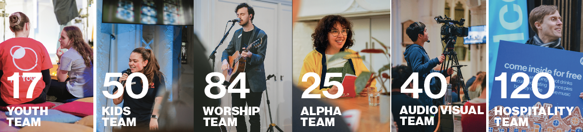 → It takes this many people to run our ministries and outreach events – and we’re still recruiting, especially as we prepare to plant a new congregation in the coming months. Whatever your gifts and skills, there’s a place for you to serve.