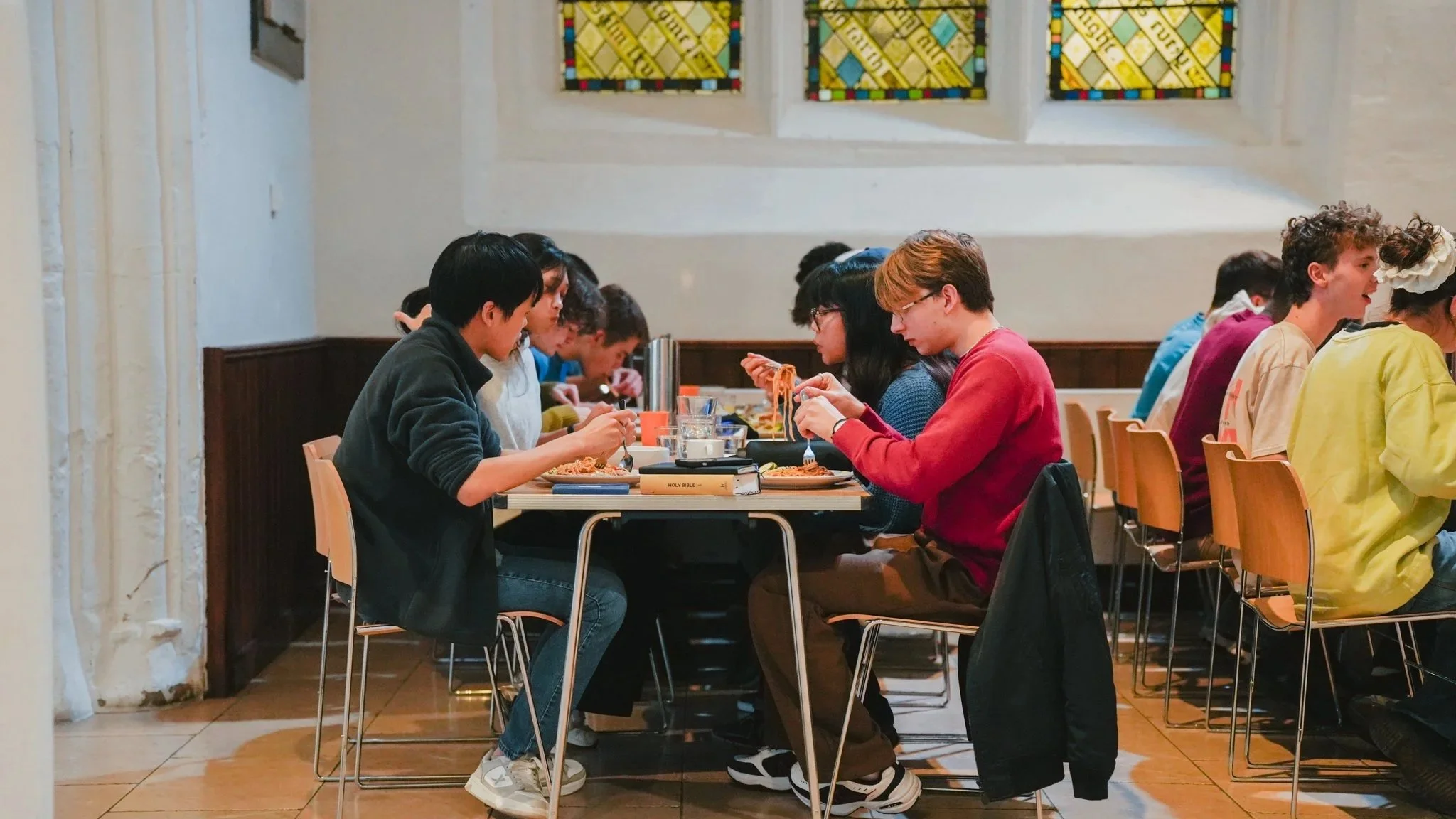 The 11.30 is a firm favourite of HT students as right after the service we head to the Henry Martyn Hall (HMH) for the infamous student lunch – two courses of delicious food! It is always loads of fun, a great chance to meet other students HT, and fill up on tasty food. So, especially if you’re a new student in Cambridge, the 11.30 service comes highly recommended and we’d love it if you’d stay for student lunch. See you there!